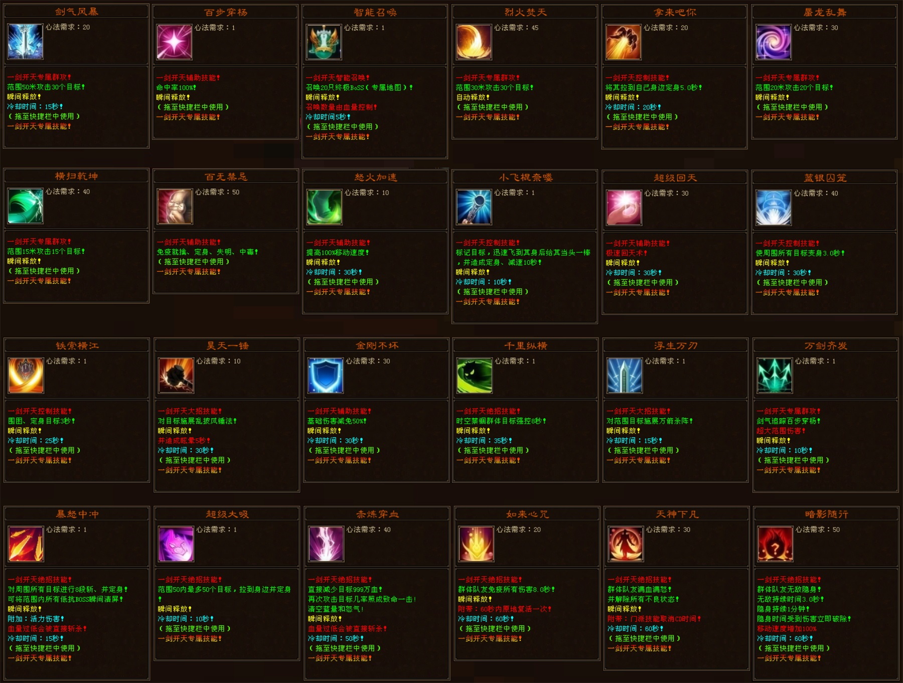 - 天龙、逍遥、武当(带范围普攻、专属群攻) → 昊天宗 → 武魂殿 (新技能门派)